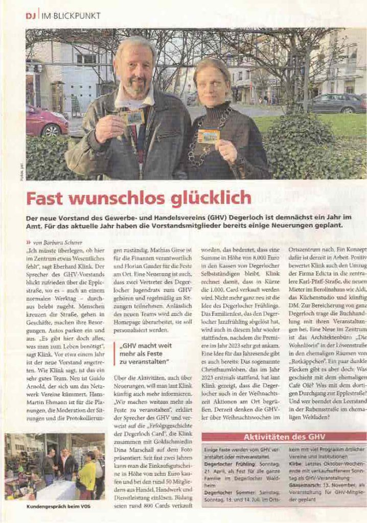 Fast wunschlos glücklich. Der neue Vorstand des Gewerbe- und Handelsvereins (GHV) Degerloch ist denächst ein Jahr im Amt. Für das aktuelle Jahr haben die Vorstandsmitglieder bereits einige Neuerungen geplant.